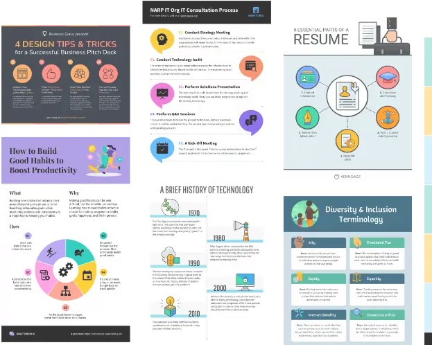 Editable infographic templates that allow users to turn complex data and concepts into engaging, easy-to-digest visuals for marketing, education, or reporting.